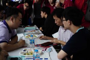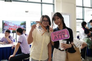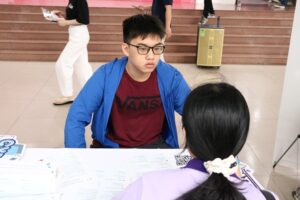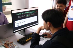 Không chỉ dừng lại ở hoạt động tư vấn, gian hàng còn mang đến không gian trải nghiệm đầy hấp dẫn với minigame “thử sức làm hacker”. Hoạt động này nhanh chóng thu hút sự quan tâm của nhiều bạn học sinh, tạo nên bầu không khí sôi động, gần gũi và đầy hứng khởi.
